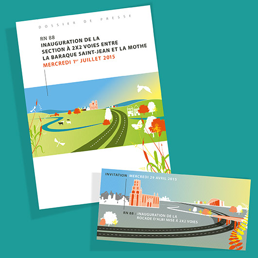 Chemise de presse et Carton d'invitation pour l'inauguration (en 2 étapes) de la RN88